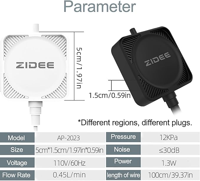 - Mini and Efficient: This mini pump can meet the aeration needs of aquariums up to 12 gallons of fish tanks, with a size of 1.97*1.97*0.6 inches, perfect for aquarium lovers with compact space. Meanwhile, the power consumption of only 1.3W is very energy-efficient, and the flow rate is 450ml/min, keeping your fish and bait alive and fresh.