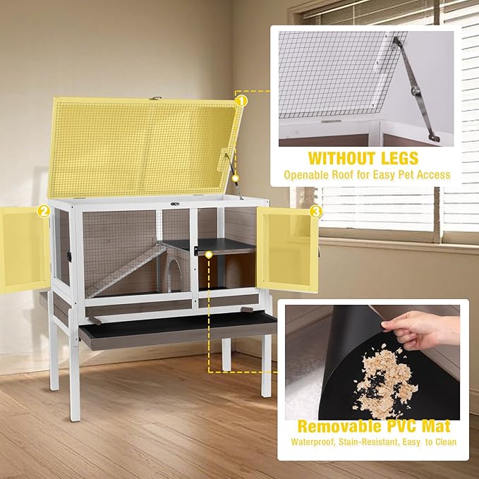 - 2-in-1 Multi-Level Design: Features distinct sleeping, dining, bathroom, and play areas. Spacious second floor (36.6"L x 19.6"W) provides ample room for 1 rabbit and 1-2 small pets.