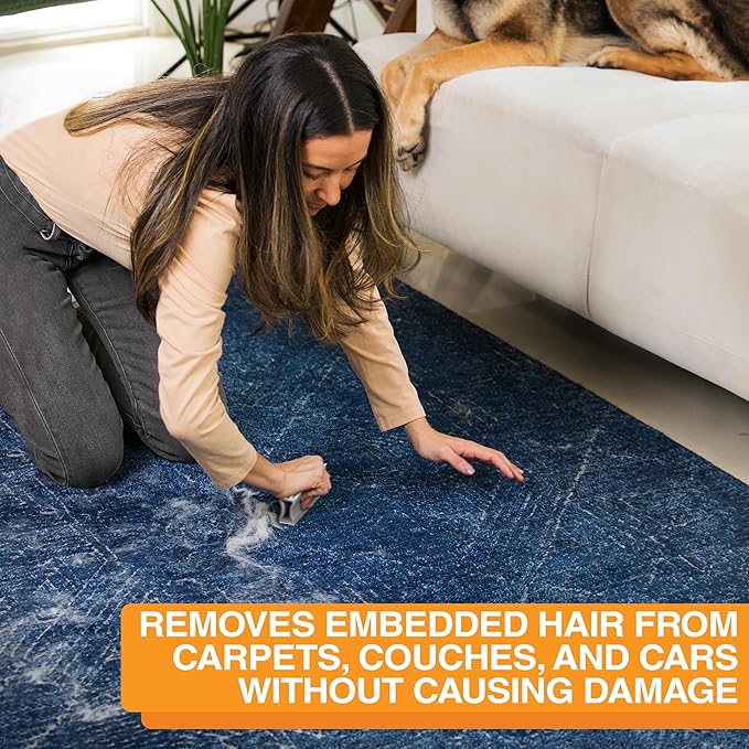 - GREAT FOR EMBEDDED HAIR: The FurDozerโs textured surfaces and ridges can get deep into carpets and couches to remove embedded hair that you didnโt even know was there. Not just for pet hair, the FurDozer will also help to collect and clean hair, lint, and other debris from your car, furniture, and more.