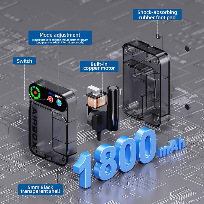 - 【Adjustable/Dual Modes】Features 4-speed airflow adjustment with smart dual-mode switching. This bait pump is equipped with a circular indicator light precisely show operation status, battery level, and airflow settings. intermittent mode reduces consumption, ideal for aquarium maintenance, portable bait containers, and long-haul transportation
