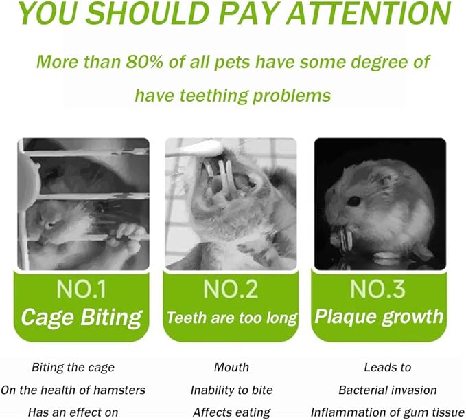 - Some Benefits:The ideal hamster chew toy can help small animals keep their teeth healthy and help pets digest;In addition, the long-awaited small animals in the cage are no longer bored and anxious;allowing you to get close to your pets