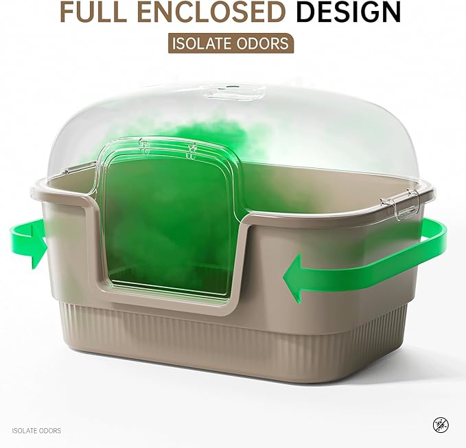 - Removable & Clear Top Cover: high back and lid reduces spillover.Your cats won't feel closed in or like they could be blindly ambushed with litter box for cats.The covered litter box is crafted from durable plastic that resists stains and odors and provides a clean and hygienic environment for your furry friend.