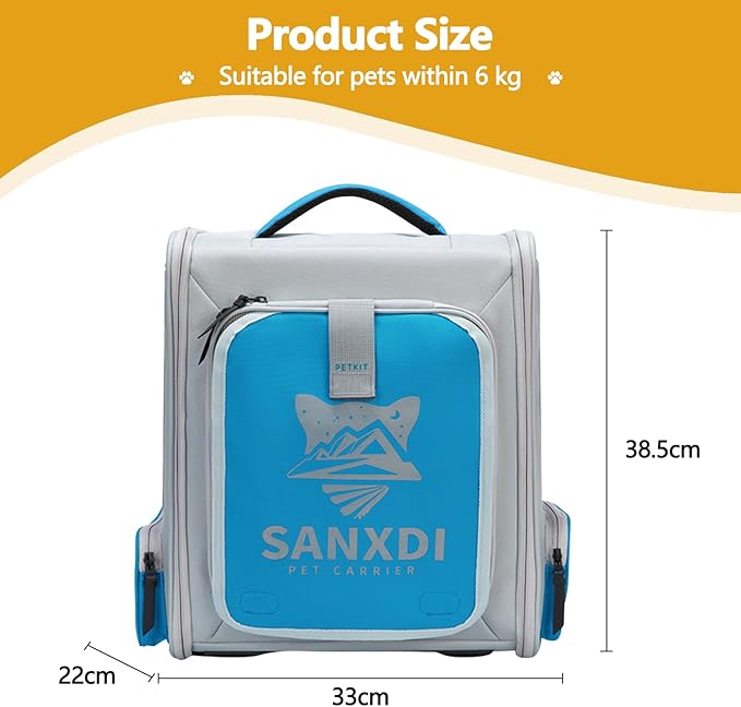 Expandable Pet Backpack, Cat Backpack with Breathable Mesh, Collapsible Soft Cat Travel Bag for Outdoor Hiking, Large Space Dog Backpack(Blue)