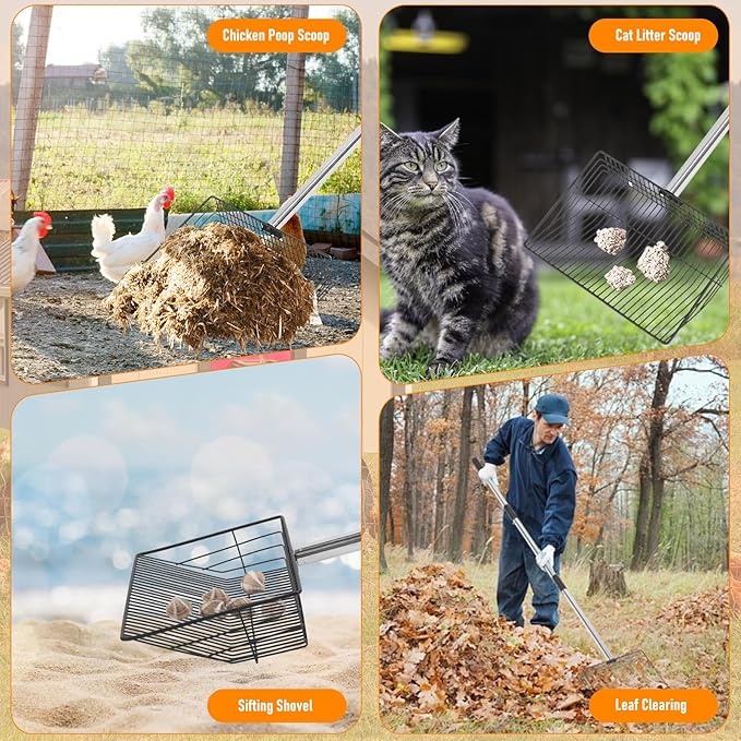 - Multiple Scenarios: Pet pooper scooper is perfect for chicken coops, rabbit cages, and cat litter boxes. Itโs also great for beach sand, garden debris, or cow pens, whether working in a small chicken coop or a larger pet area, long handled cat litter scooper makes cleaning tasks easier and less tiring.