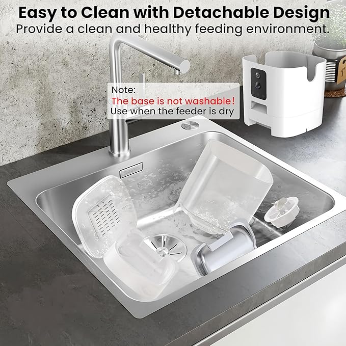 - Dual Camera Smart Monitoring: 2K 3MP main camera with infrared night vision function, you can observe your pet at any time. The secondary camera can monitor the remaining food in the bowl through the app. When you don't want to turn on the camera, you can turn on the privacy mode.