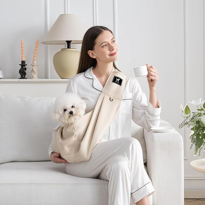 Dog & Cat Carrier Sling, Adjustable Soft Padded Shoulder Puppy Carrier, Hands-Free Dog Carrier Bag with Double Safety Buckles Premium Material for Outdoor Travel (Apricot, L)
