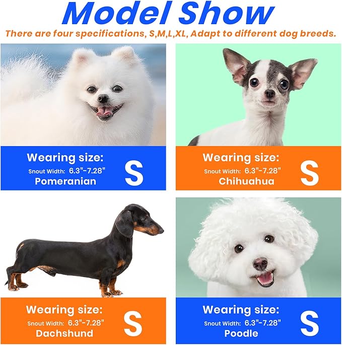 - PLEASE MEASURE BEFORE BUYING:Measure both snout circumference and snout length before purchasing. If your dog's snout length exceeds the size range by about 1 inch, choose the next size up. For long-snout breeds like Dobermans, make sure the snout length fits as well.