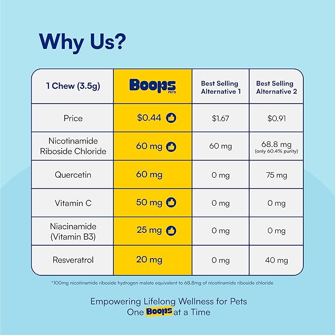 - 𝐏𝐫𝐞𝐦𝐢𝐮𝐦 𝐋𝐨𝐧𝐠𝐞𝐯𝐢𝐭𝐲 𝐒𝐮𝐩𝐩𝐨𝐫𝐭, 𝐌𝐚𝐝𝐞 𝐰𝐢𝐭𝐡 𝐋𝐨𝐯𝐞: Boops Pets Longevity & Anti-Aging soft chews deliver clinically-backed ingredients at optimal doses — often 50% more affordable than other options. Because to us, our dogs are part of life. To them, we are life. Let’s help them stay healthier, longer — with pure nutrition and endless love.