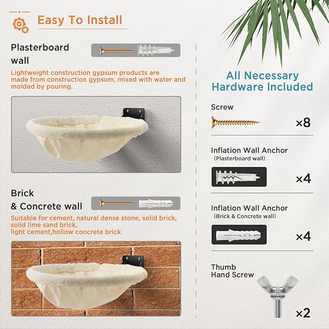 - Easy to Disassemble and Clean: JUNSPOW's Wall Mounted Cat Hammock is a removable design with a detailed installation manual that makes assembly and disassembly simple. The fabric cover can be quickly removed for cleaning and is easily cleaned with a mild detergent.