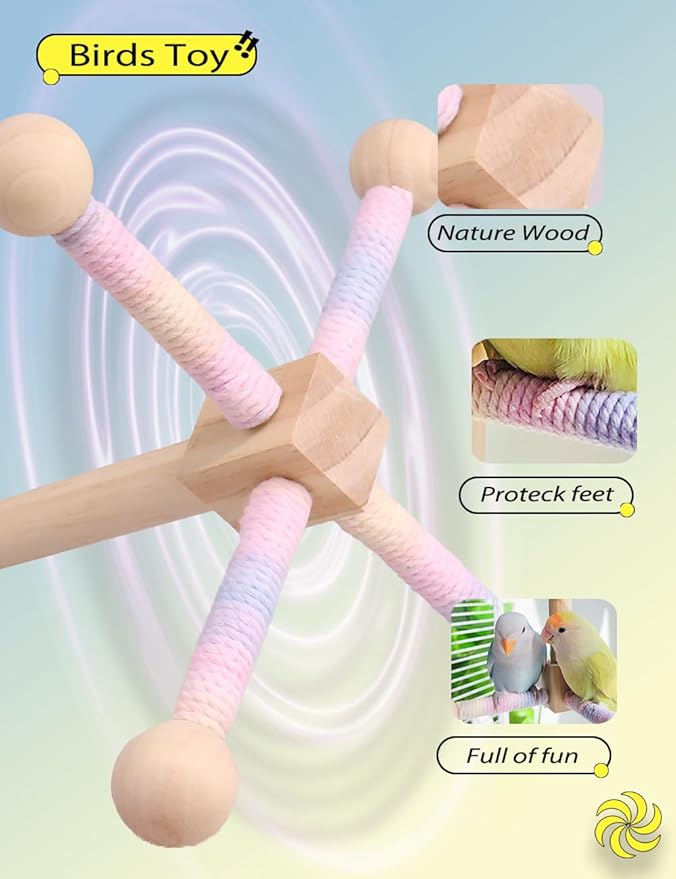 Bird Stand Perch Toy, 360° Rotating Natural Wooden Parrot Perch for Bird Cages, Colorful