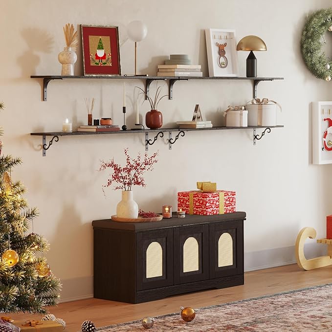 - 【Effortless Push-to-open Door】Feature a fully enclosed design with a press-to-open mechanism, keeping shoes clean and tidy while avoiding accidental bumps against door handles during use. Reasonable height and soft cushion let you change shoes by sitting on the bench more comfortable without bending down or squatting