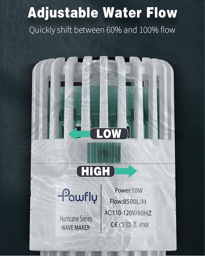 - Quiet & Adjustable: Equipped with an optimized motor, it runs silently under 35 dB, keeping your tank calm while promoting the well-being of your aquatic pets. And the handy sliding switch lets you quickly shift between 60% and 100% flow