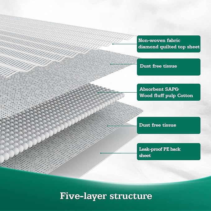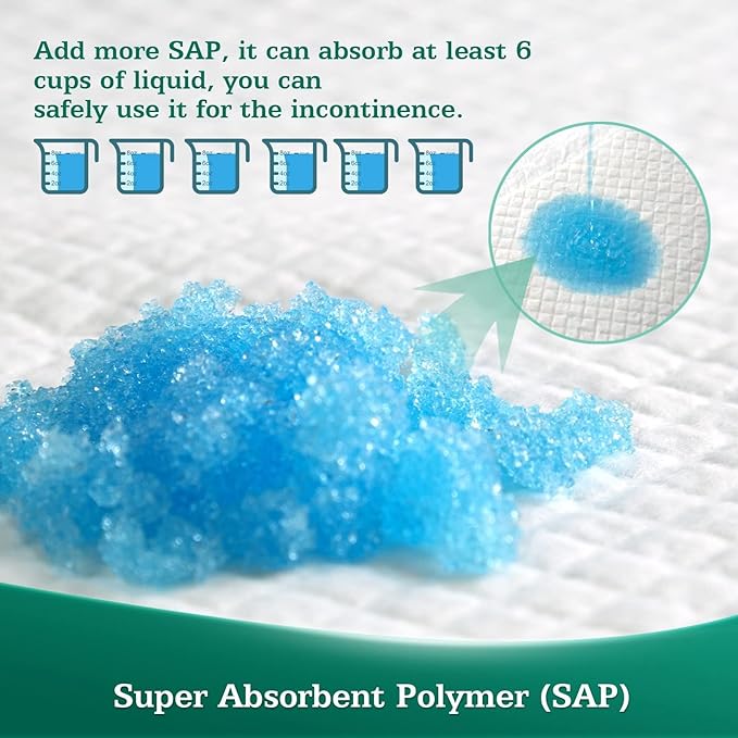 - Enhanced Absorption Capacity by 15%: Our premium bed pads with 6 layers can lock in large amount of liquid instantly.With advanced absorbent core and polymer(SAP),the heavy duty pads realize 3 Seconds flash dry absorbs without swelling or disintegrating