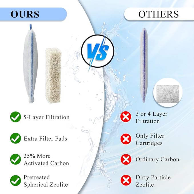 - 5-Stage Filtration: The kit includes ammonia reducer filter pads and filter Cartridges which is made of dense dual-sided mesh, Better thickness provides better filtration, Ultra-Activated carbon instead of ordinary carbon and also add processed zeolite, which can effectively filter and absorb impurities in the water to keep the clean water source and provide the healthy growth environment for fish