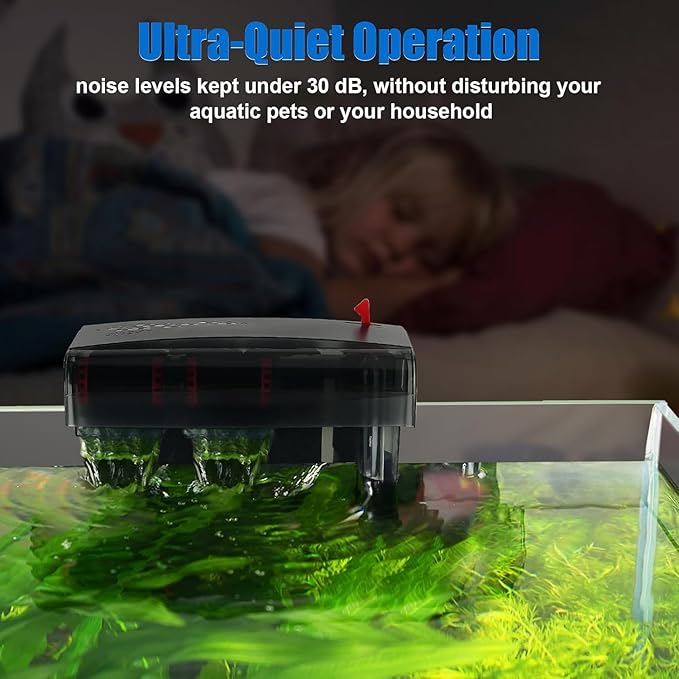 - WHISPER-QUIET OPERATION - Designed with advanced noise reduction technology, this small aquarium filter includes a water wheel that further minimizes sound. Operating at a quiet 30 decibels or lower, itโs perfect for bedrooms, offices, or any space where peace and quiet matter. Enjoy a serene environment without disturbing your aquatic pets or family, while still ensuring your tank stays clean and healthy. Ideal for those seeking a calm, noise-free filtration solution