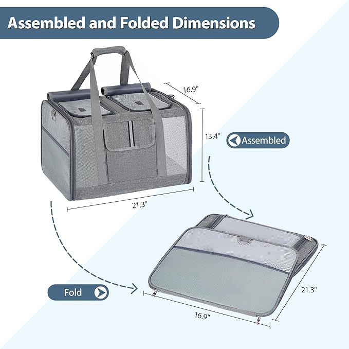 Cat Carrier for 2 Cats – Large Soft-Sided Pet Travel Carrier, Dual Compartments, Privacy Protection, Dog Carrier for Small/Medium Dogs, Home & Outdoor Use