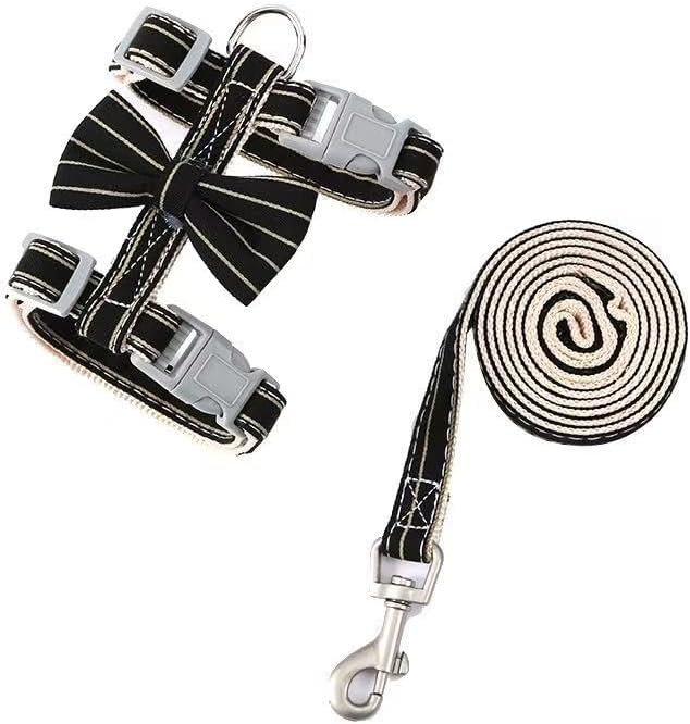 Butterfly Bow Tie Cat Harness and Leash Set - Adjustable, Escape-Proof, Breathable Kitten Vest with Cute Design for Small Cats & Indoor/Outdoor Safety Black S