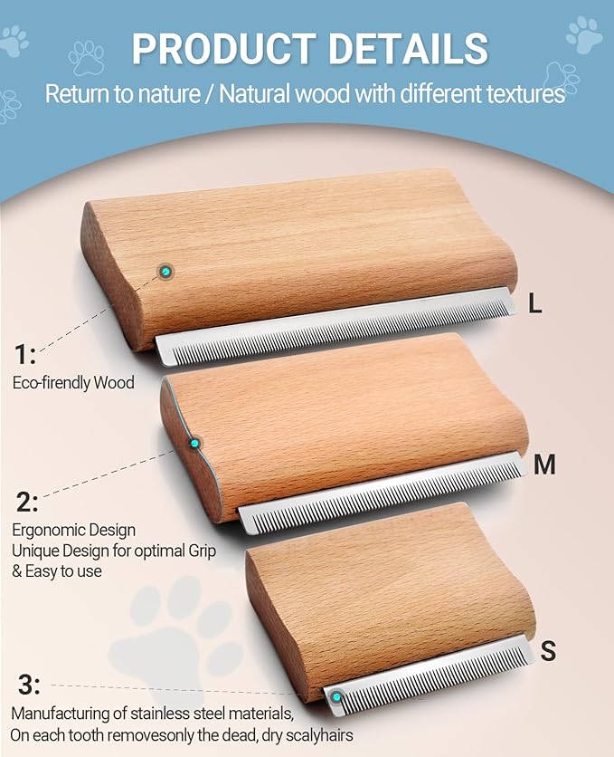 - 😄【Enjoy comfortable brushing】 - Our dog and cat brush for shedding uses an ergonomic handle that’s made using wood with a smooth surface for a comfortable grip, .. No-rust stainless steel teeth are ultra durable & easy to clean.