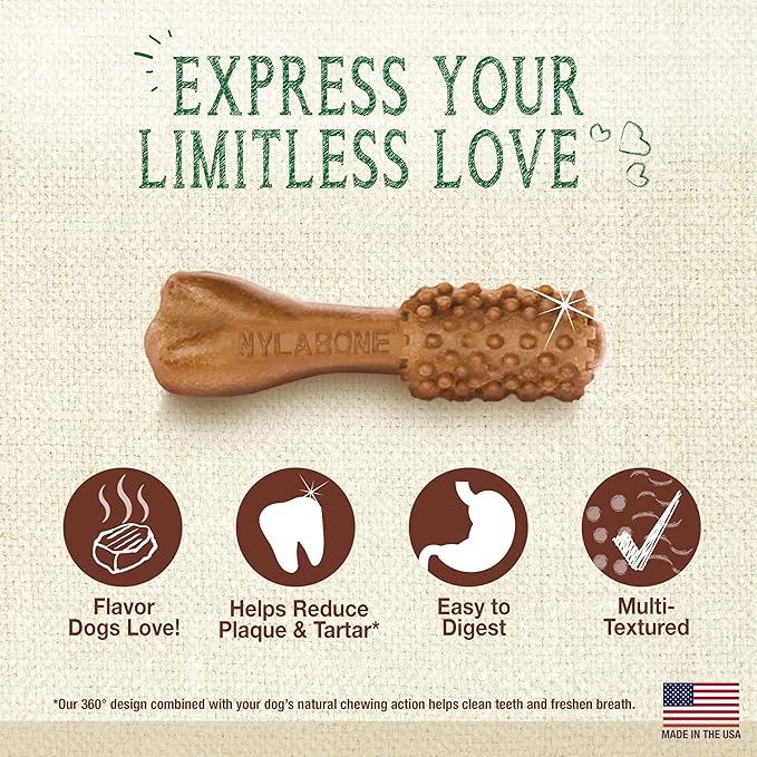 Nylabone Nutri Dent Dog Dental Chews - Natural Dog Teeth Cleaning & Breath Freshener - Dental Treats for Dogs - Filet Mignon Flavor, Mini (32 Count) (Pack of 2)