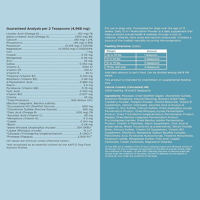 12-in-1 Multivitamin Powder for Dogs - 14 oz of Puppy and Senior Dog Vitamins and Supplements - Advanced Formula with Glucosamine, Omega 3,6,9, Vitamins, Probiotics, and More - Made in The USA