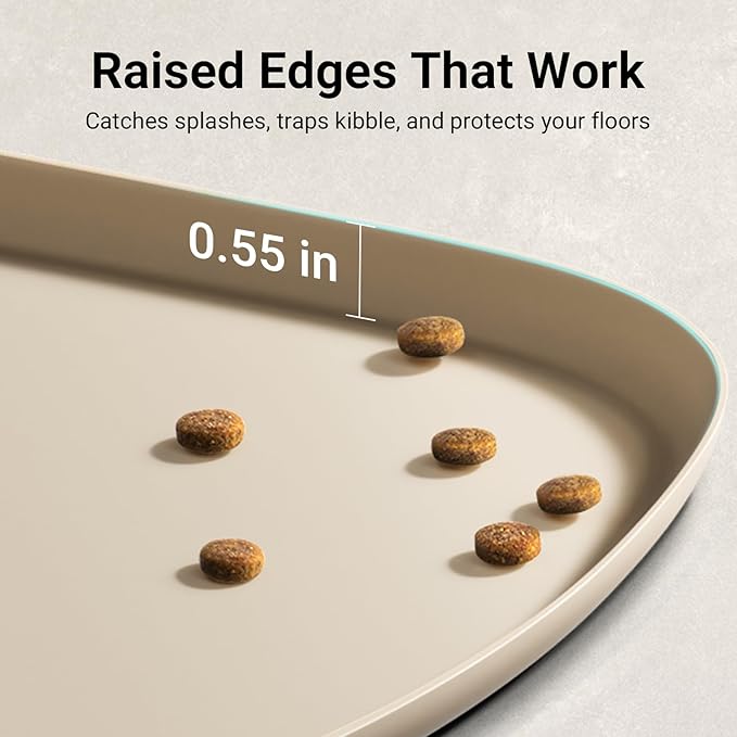 - Stop Messes, Start Happy Mealtimes: Designed with a 0.55 inch high rim around all sides, the pet food mat keeps spills, water splashes, and food crumbs securely contained. The dog water mat keeps floors dry and giving messy eaters freedom to enjoy food