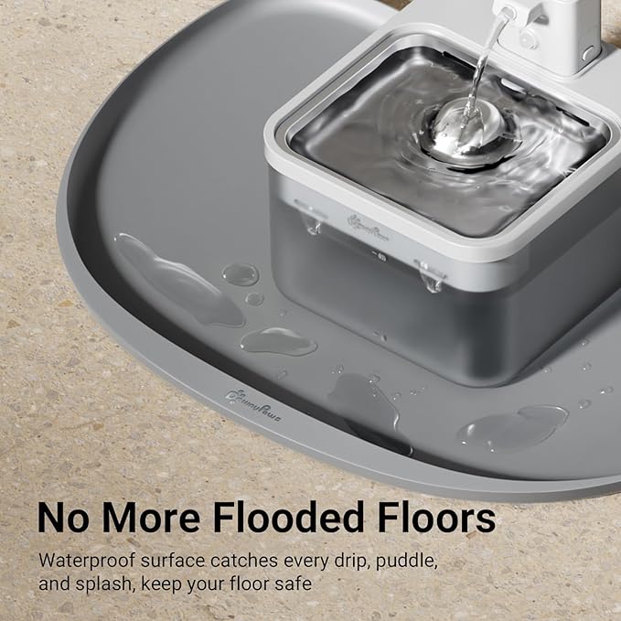 - Available in Two Sizes: Choose from two size options to suit your space and feeding setup. Sized to fit DownyPaws fountains or dog water bowl perfectly, while also compatible with most pet food and water bowls or feeder. (S: 17.8×12.5×0.6 in, M: 24.2×17×0.8 in)