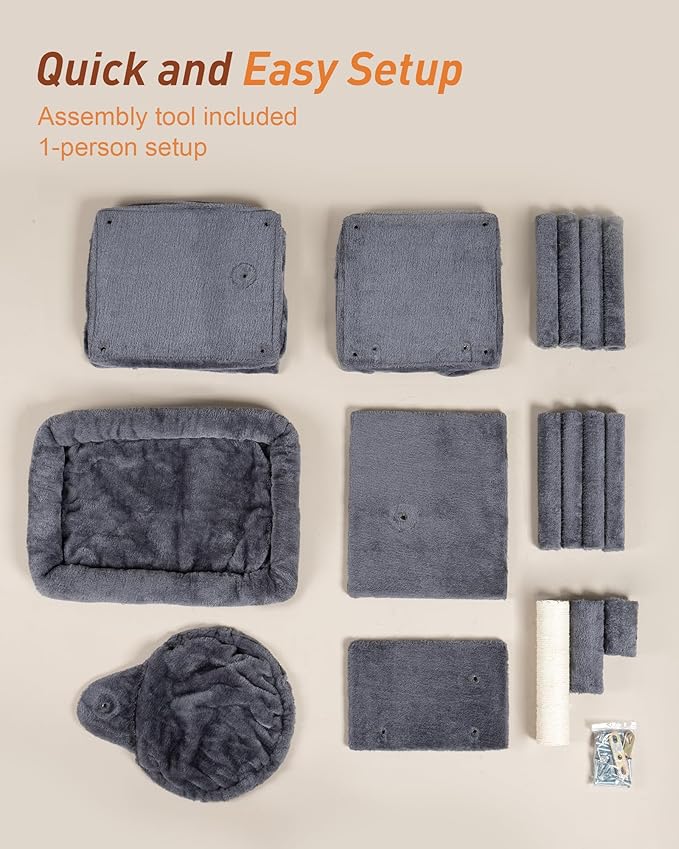 - Stable for All Cats, Big or Small: With overall dimensions of 23.6" W × 21.6" H × 13.8" D, this cat tower features a wide, sturdy particleboard base to keep things steady—whether for playful kittens or heavy jumpers. An anti-tip kit is included for extra safety.