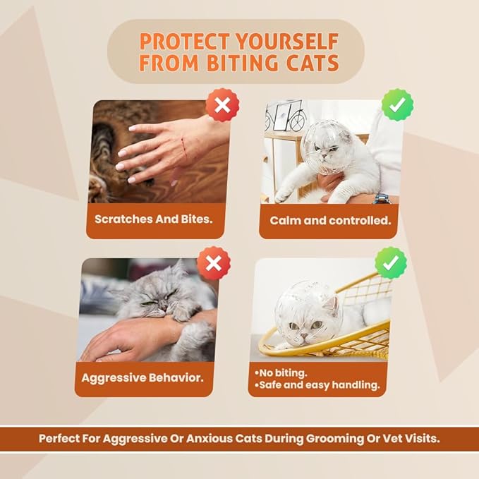 - Safe & Comfortable Cat Muzzle – Designed with durable transparent plastic to prevent biting and scratching while allowing clear vision and easy breathing. Ideal for grooming, vet visits, or bath time.