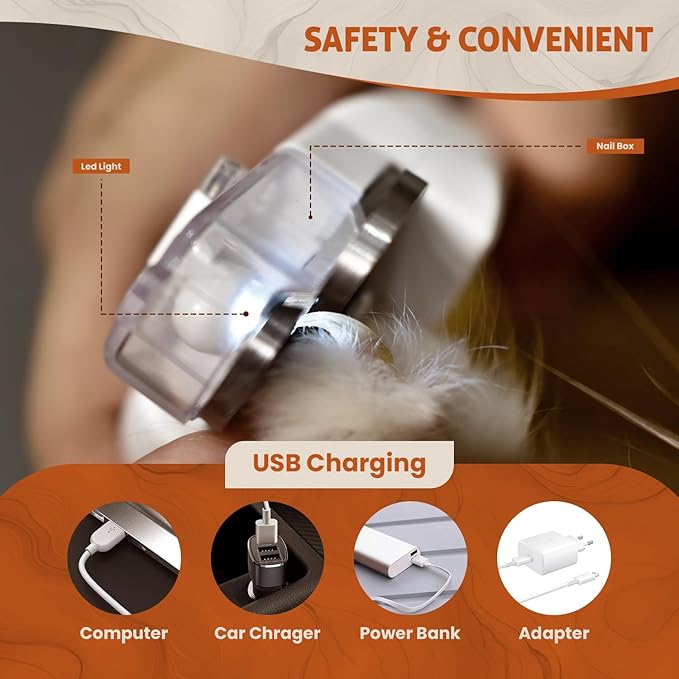 - Low-Noise, Stress-Free Grooming – Quiet, low-vibration motor keeps anxious or skittish pets calm, making nail trimming and handling safe, gentle, and stress-free for both cats and dogs.