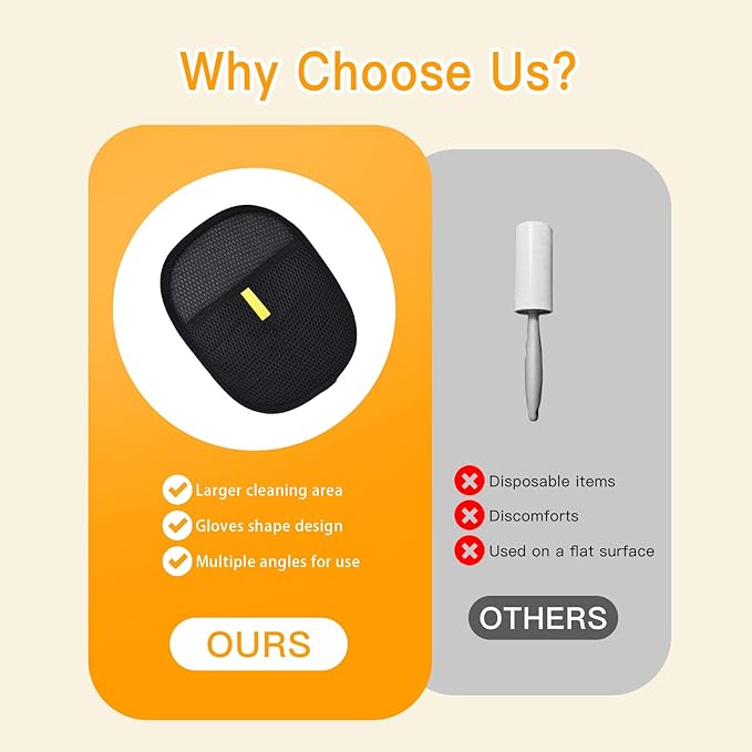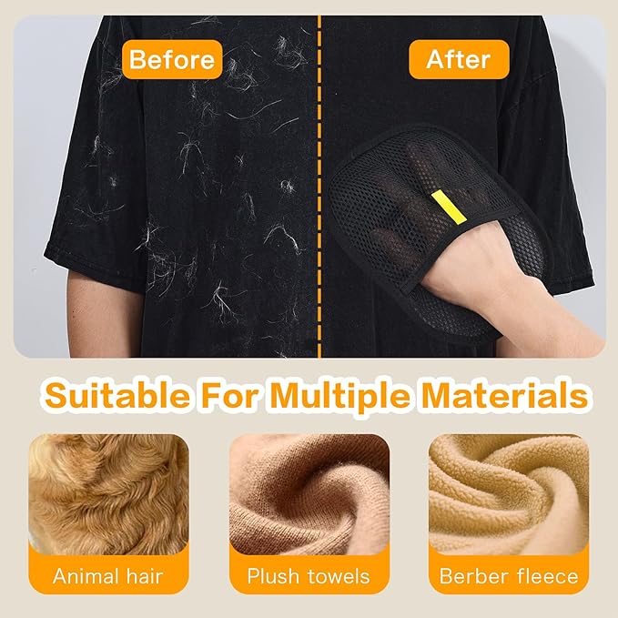 - Two-way brush design: This pet hair removal gloves adopts the design of left and right two-way hair removal cloth, which can make yomi pet hair remover gloves and furniture surface generate static electricity by rubbing back and forth to achieve the effect of absorbing hair. The two-way design of electrostatic pet hair remover will immediately gather pet hair into strips, allowing you to clean a large area quickly and effectively. Keep your home hairless with minimal effort.
