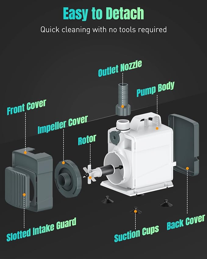 - Smart & Convenient Design: The protective intake cover keeps out shrimp, fry, and debris without restricting water flow. This pump can be connected to a hose for use outside water, making it suitable for both submerged and out-of-water applications