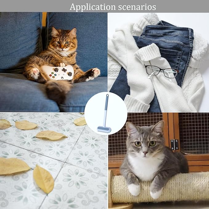 - 4-in-1 Pet Hair Removal Tool:A dual-sided brush for embedded fur, a silicone squeegee for glass, a crevice brush for tight spaces, and a lint roller alternative for fabrics. No more switching tools!