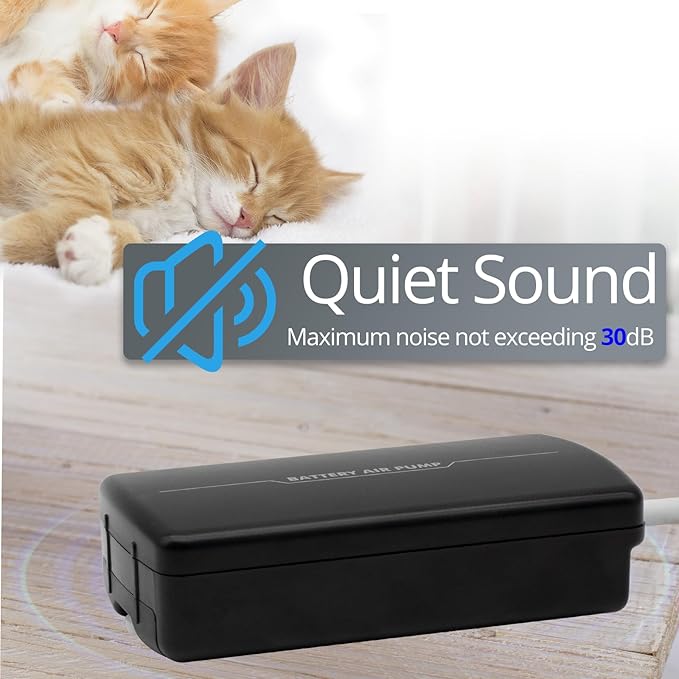 - [Attention]: The product cannot be fully submerged. When the Aquarium air pump is equipped with a battery, connecting the USB cable will automatically power off the battery. In this case, power will be supplied through the USB cable, and the USB cable will not provide power to the battery. Regularly clean the air inlet and gas stone to avoid reduced air volume and damage