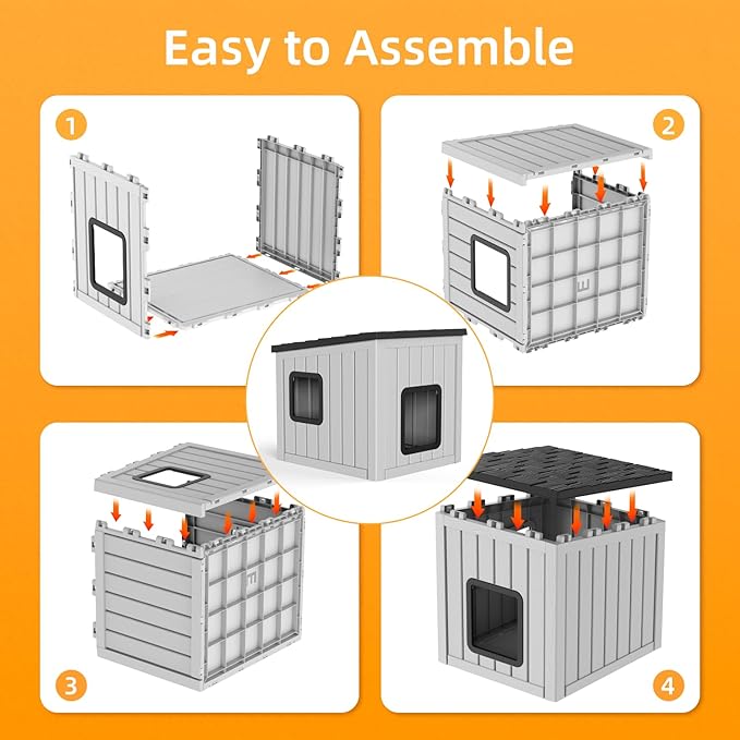 - Elevated Floor & Easy to Clean:The elevated floor design keeps the dog house away from damp ground, ensuring a dry space. The smooth resin surface is easy to cleanโsimply wipe with a cloth to maintain hygiene, ideal for busy pet owners.