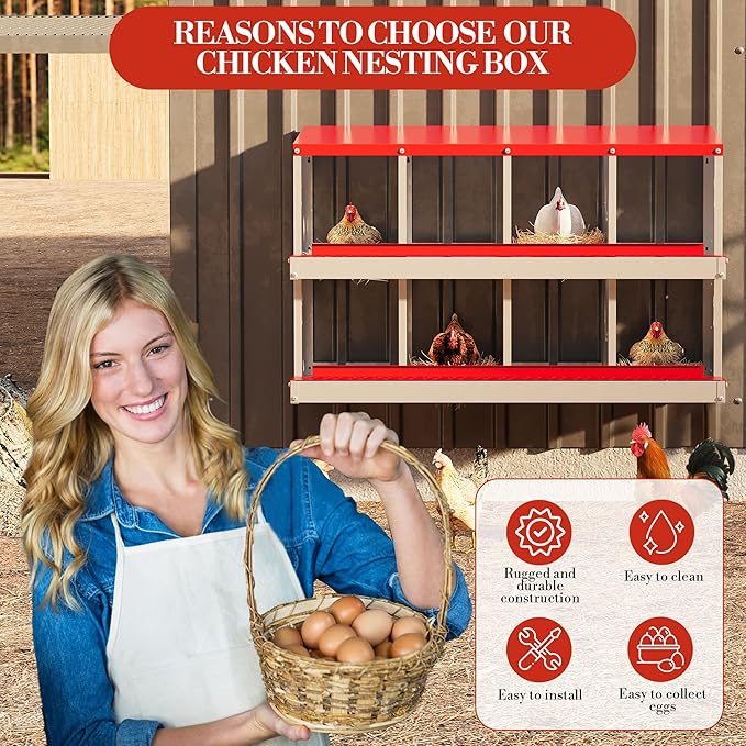 - Built to Last for Your Flock: Made from heavy-duty galvanized steel, this rustproof chicken nesting box stands strong against weather and wear, giving you years of reliable use so you can focus on happy, healthy hens instead of replacements
