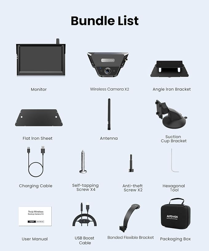 - Portable Safety & Peace of Mind: Stick the cameras where you need them, move the monitor easily with the bendable bracket. Perfect for keeping watch from anywhere – your truck, your RV, or even when you're setting up camp. Easy setup, instant visibility, total confidence
