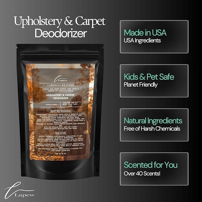 - Powerful Odor Eliminator for Strong Odors: Say goodbye to stubborn smells with the Lapew Cardigan Weather Carpet Freshener Powder, specially formulated to tackle everyday room odors.