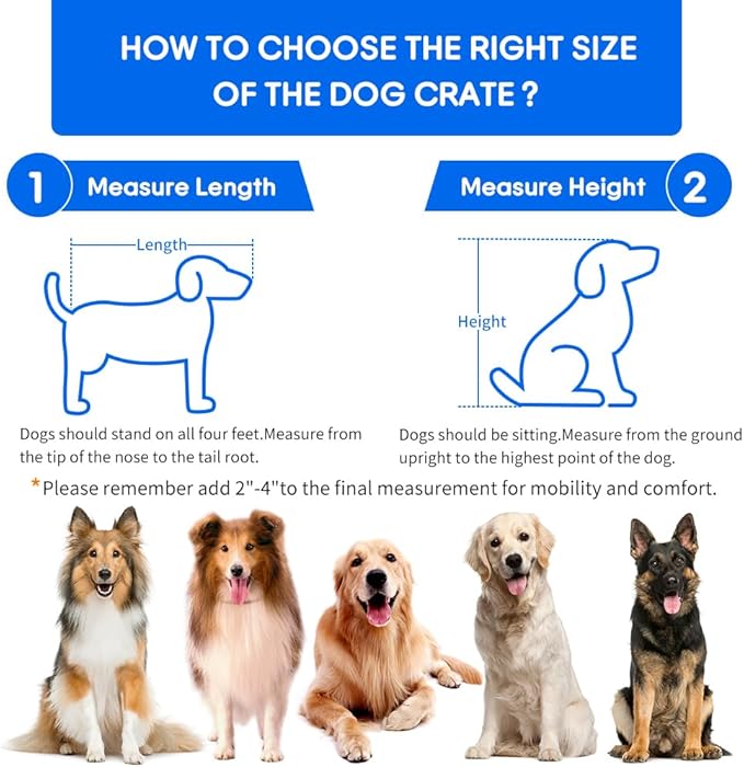 - π[Upgraded Door Lock and Seat Cushion] This dog crate features an upgraded lock plate for aesthetics and ease of use. The door lock securely secures the door, ensuring your dog's safety and minimizing the noise of the door locking. The large dog crate comes with a matching soft seat cushion that's comfortable and removable, providing a comfortable and cozy experience for your dog.