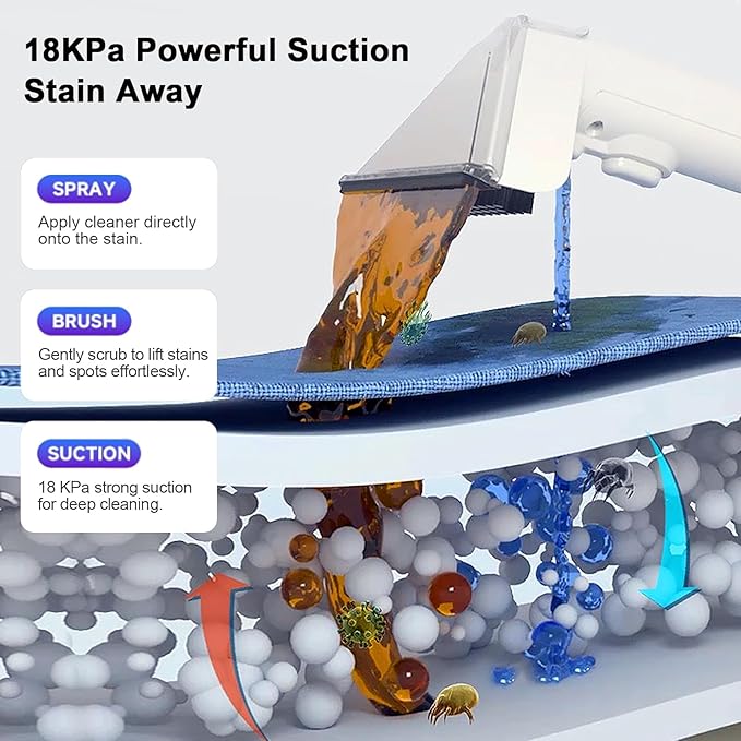 - 【NEW UPGRADE POWERFUL SUCTION】:The COCEAN Portable Carpet & Upholstery Spot Cleaner is equipped with a 500W motor, which can provide a super suction force of 18Kpa,and you can easily and quickly clean stubborn stains such as dirt, wine, pet feces, etc. on carpets and indoor decorations through spraying, brushing, and suction steps, ensuring that carpets dry quickly after cleaning and quickly return to normal, making your home environment healthier and safer.